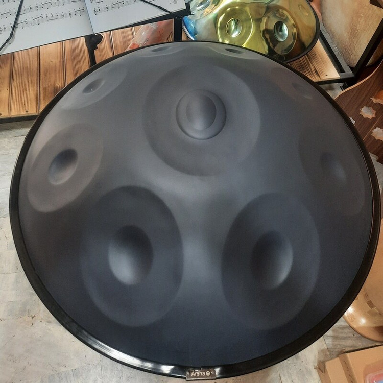 هنگ دارم آرشا فولاد نیتراید همراه با کاور بدون نیاز به روغن کاری هنگ درام طوسی مات 9 نت کوک شده گام رمینور کمپانی آرشا، هنگ درام های خود را در سه دسته فولاد نیتراید، استیل و تیتانیوم تولید کرده است. جنس فولاد نیتراید این هنگ درام ها قدرت پخش صدای خیلی خوبی به ساز می دهد و باعث می شود هنرجو بتواند با انگیزه بیشتری به تمرینات خود ادامه دهد. در کل هنگ درامِ آرشای فولاد نیترایدِ 9 نت در گام رمینور برای افراد علاقه مند که تازه می خواهند شروع به یادگیری این ساز کنند عالی است. هنگ درام های فولاد نیتراید تاکنون در دو رنگ طوسی مات و مشکی مات تولید شده اند که به علت طراحی زیبای آن طرفداران بسیاری نیز در بازار پیدا کرده و سهم وسیعی از فروش هنگ درام های آرشا مربوط به این دو رنگ می باشد. همچنین هنگ درام های فولاد نیتراید بر خلاف جنس استیل آن ها نیاز به روغن هنگ درام ندارند و صرفا کافی است که سطح ساز را هر چند وقت یکبار با دستمال آغشته به مقداری ضدعفونی کننده تمیز نمایید. لازم به یادآوری است که گام رمینور متداول ترین و پرکاربردترین گام برای هنگ درام می باشد.