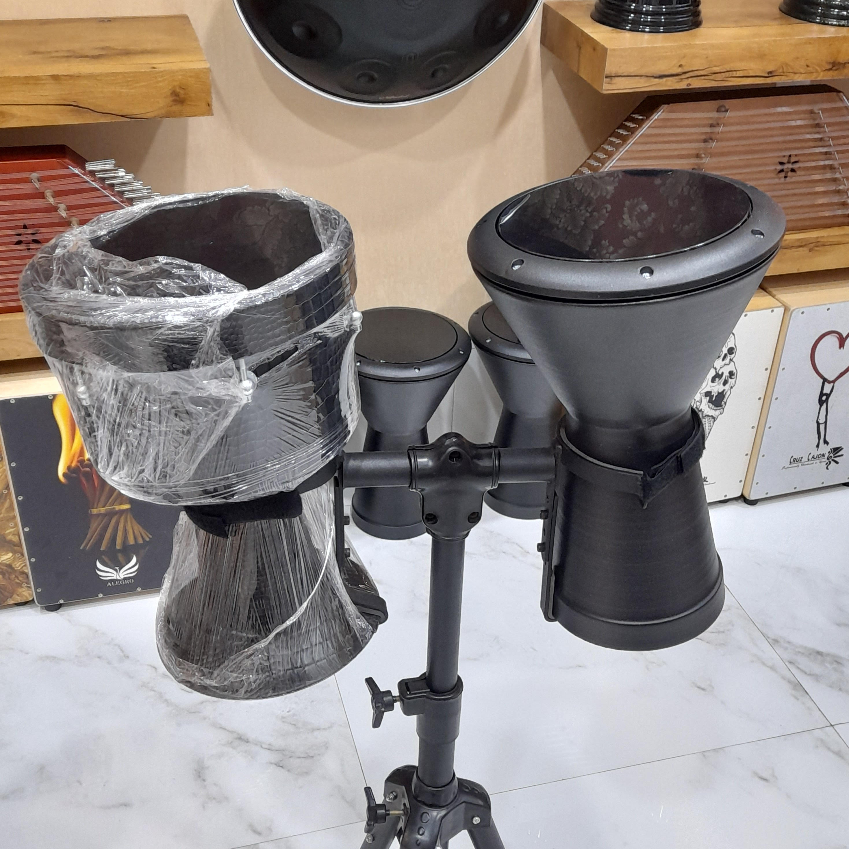 ست تمپو و ضرب بوشهری پژواک رنگ مشکی به همراه پایه مخصوص